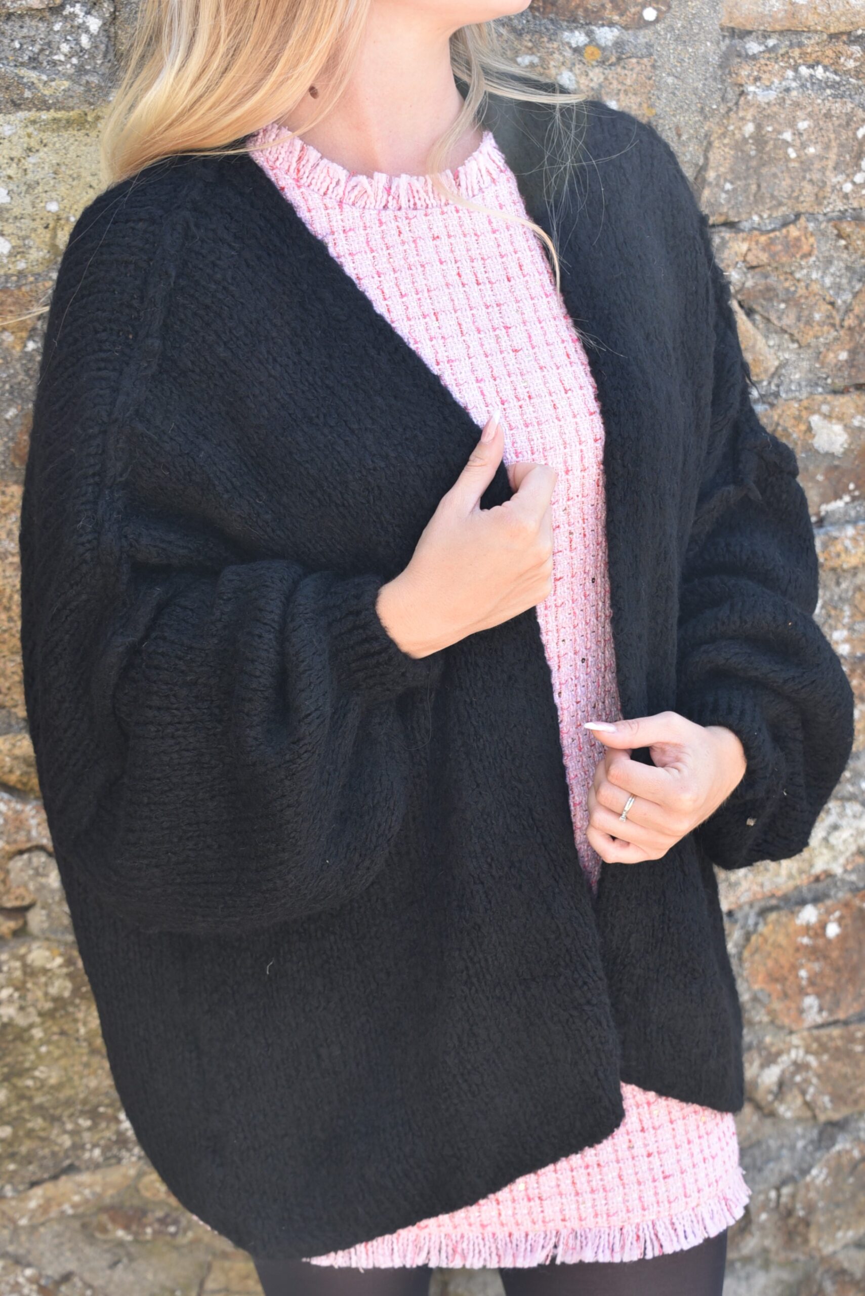 Un indispensable Automne/Hiver : gilet en laine et viscose, doux, décliné en noir, blanc, rose et écru.